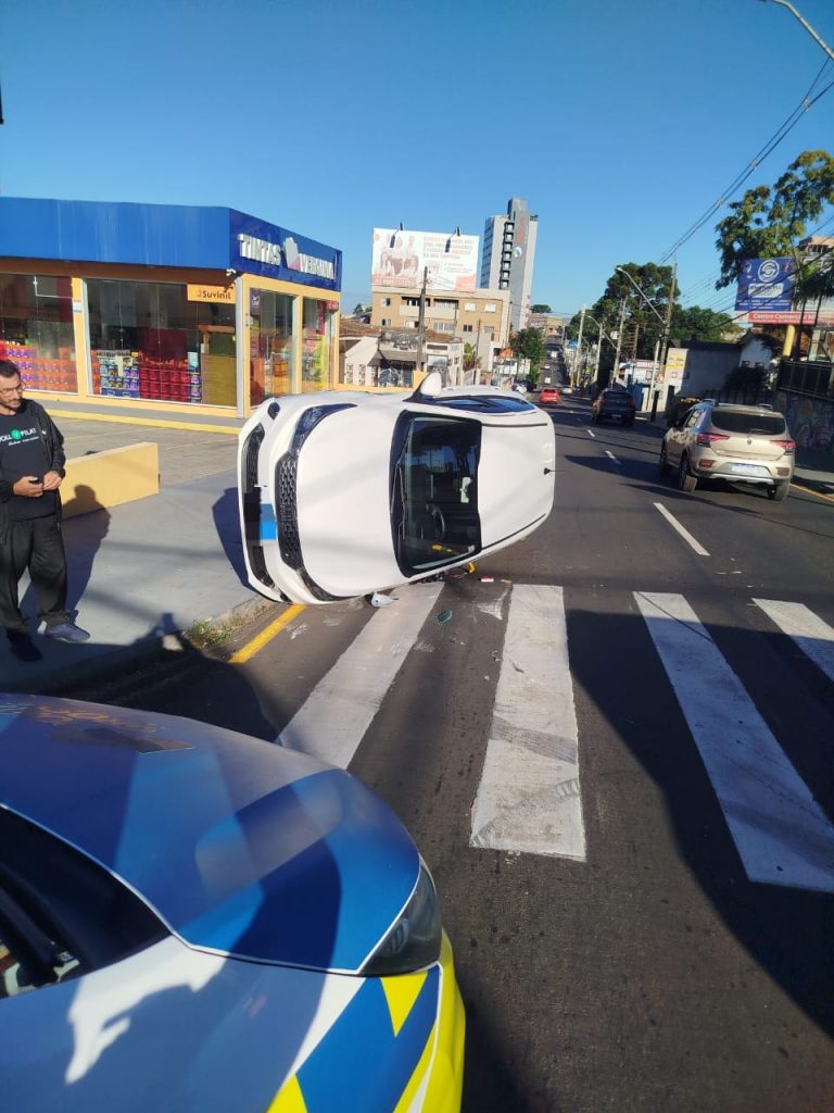 Na tarde de ontem terça-feira (29), por volta das 15h45, uma colisão entre dois veículos resultou no tombamento de um deles no cruzamento das ruas Emílio de Menezes e Luiz Gama, em Ponta Grossa. O acidente ocorreu nas proximidades da loja Tintas Virgínia e mobilizou equipes de resgate e segurança viária.